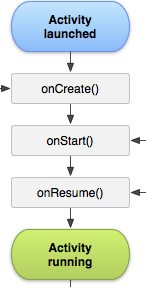 Activity가 시작되면 onCreate( ) -> onStart( ) -> onResume( ) 순서로 호출된다.