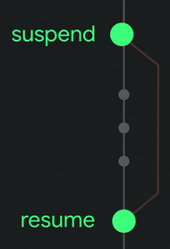 위 그림에서 중점적으로 봐야 할 부분은 바로 함수 선언 앞에 붙어있는 suspend 키워드이다. suspend는 코루틴의 핵심 메커니즘이다. suspend된 코루틴은 일시 중단된 것이며 resume되면 중단된 위치에서 다시 시작한다. 1장에서 작성한 코루틴의 특징을 suspend 키워드로 잘 나타낸다.